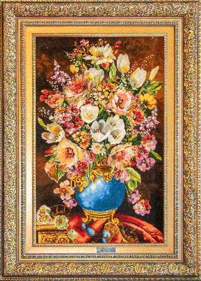 çiçekler ve vazo halı paneli